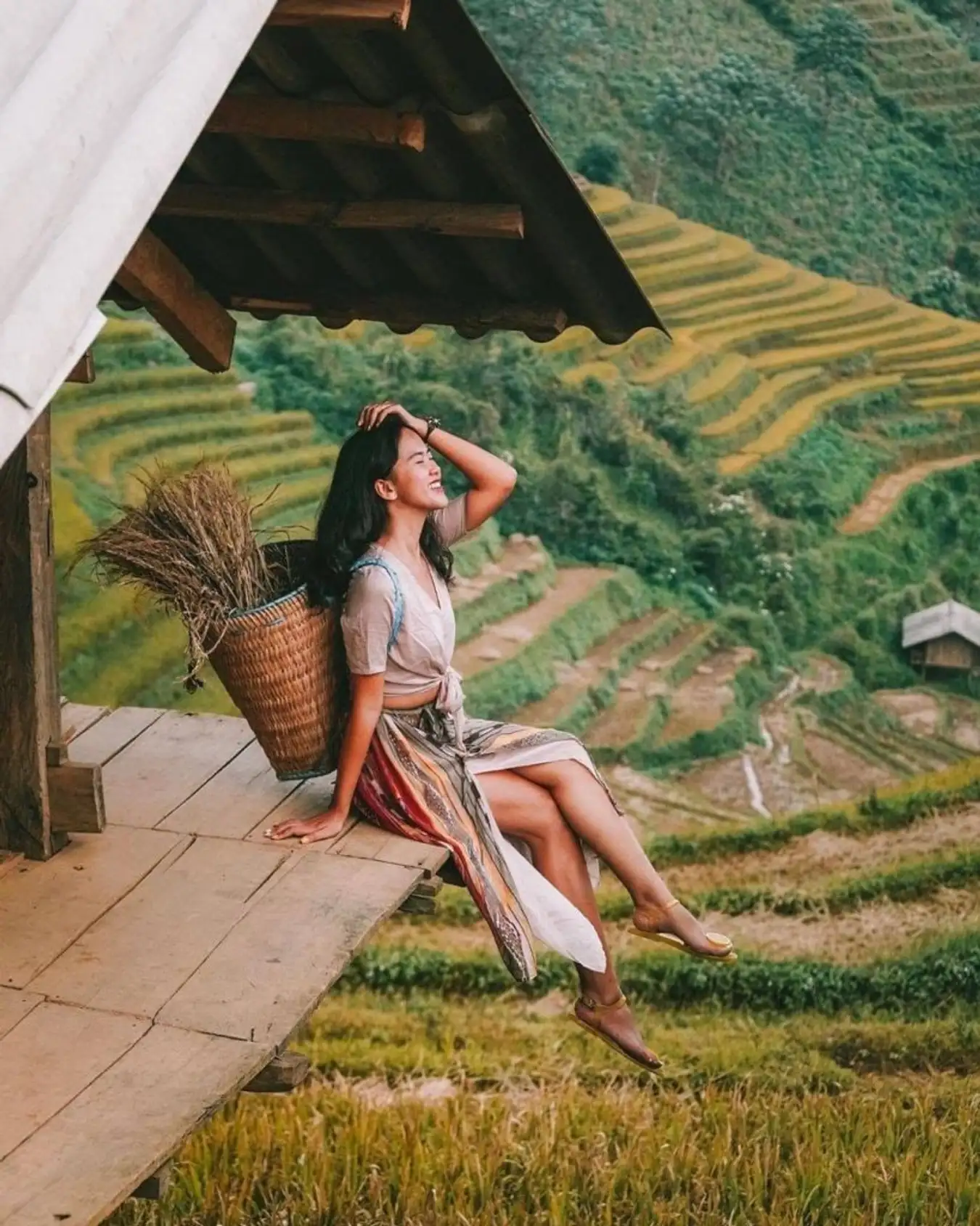 Khung cảnh cực “tình” nhìn từ các nếp nhà trên cao nhìn xuống cánh đồng Mù Cang Chải. @hueandsuntravel