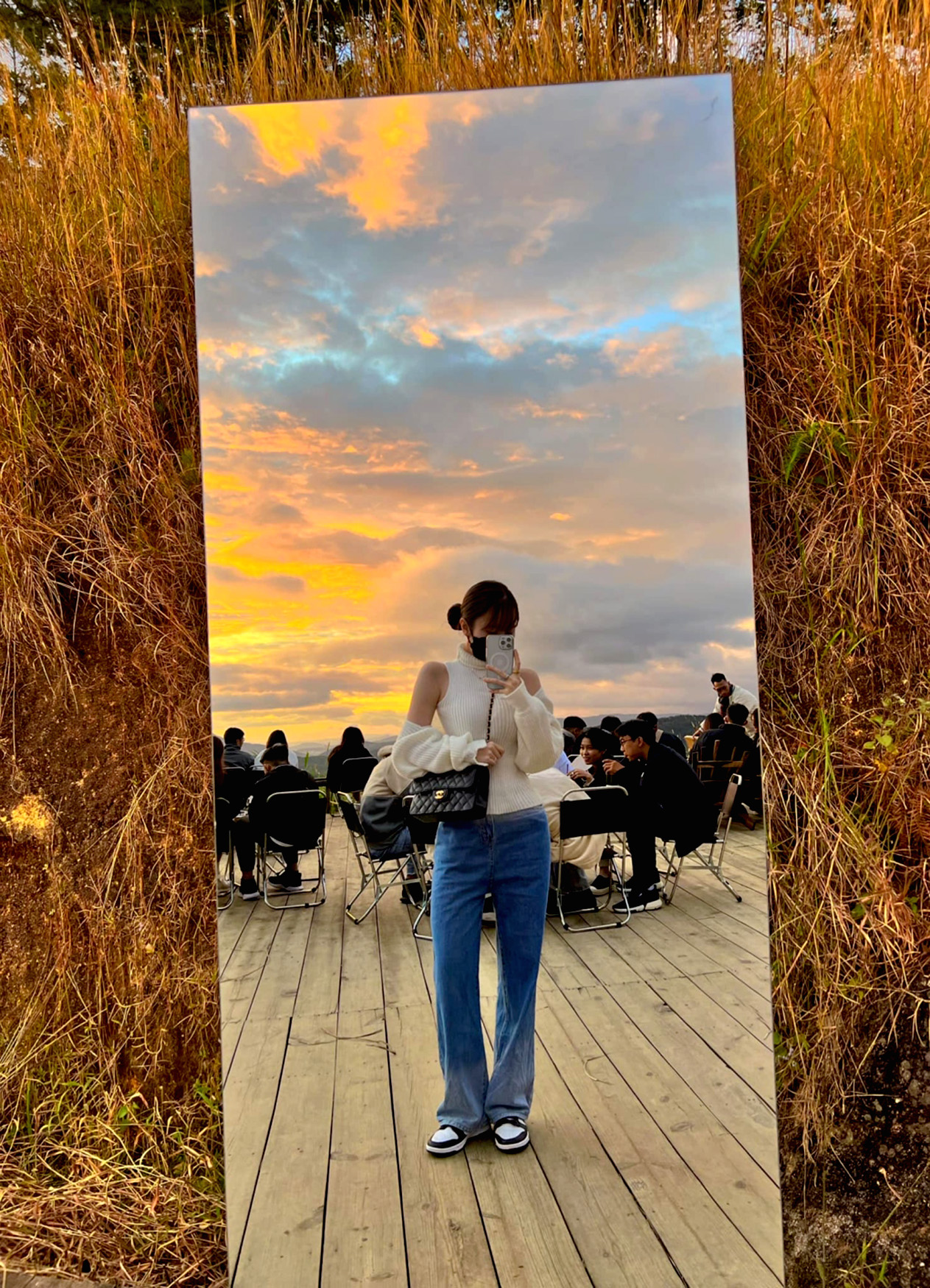 Cách chụp hình chất này, bạn cần để điện thoại gần với gương mặt. Vì vậy hãy chuẩn bị cho bản thân một gương mặt thật thần thái, biểu hiện được những cảm xúc và những trạng thái thông qua bức ảnh. Đứng lùi lại so với gương một xíu, đảm bảo rằng toàn bộ cơ thể của bạn nằm trong gương và rơi vào điểm mạnh của ảnh. Đặc biệt là khi bạn chọn cho mình những chiếc quần ôm thì đừng quên chĩa đầu ngón chân về phía trước. Như thế sẽ giúp “kéo dài” chân của bạn thêm đây nhé. Hay đơn giản hơn, chỉ cần ngồi xuống và thẳng lưng, là bạn đã có cho mình một tấm ảnh selfie qua gương độc đáo và khác lạ rồi.